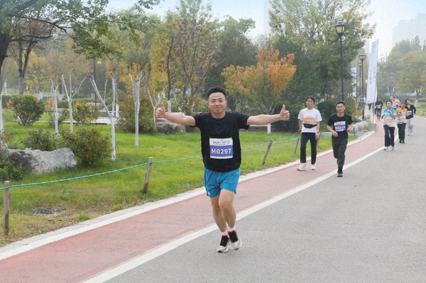 集結(jié)列陣 鳴笛開跑在鳴笛發(fā)令后,健康跑正式開跑!秋風(fēng)拂面,腳步鏗鏘,隊(duì)員們你追我趕、意氣風(fēng)發(fā),成為湖畔一道流動的風(fēng)景線。