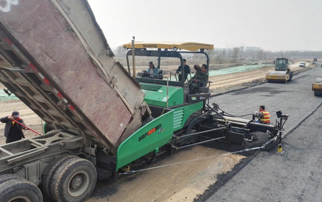 2019年3月,山推攤鋪機(jī)、壓路機(jī)參與省內(nèi)某市政公路工程建設(shè),并負(fù)責(zé)水穩(wěn)層以及面層施工。在施工過(guò)程中采用SRP90S-PLUS、SRP95M-PLUS雙機(jī)連鋪,超高效率完成攤鋪?zhàn)鳂I(yè),縮短施工工期,并贏得施工方與客戶的高度認(rèn)可。