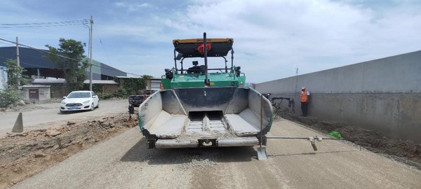 該項目為期60天,建設內容涵蓋道路、排水、給水、照明及綠化等多個方面,其中道路工程由山西科坤建筑工程有限公司承建。施工現(xiàn)場全程嚴格按照國家道路建設標準進行,主要施工環(huán)節(jié)為水穩(wěn)層攤鋪與壓實。作業(yè)期間,山推SPF82-G攤鋪機與一臺輪胎壓路機、一臺單鋼輪壓路機協(xié)同配合,高效完成了當前階段的水穩(wěn)層施工任務。