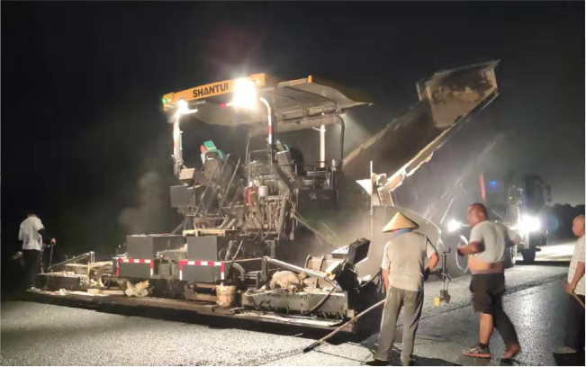 山東省青島黃島區(qū)集成路瀝青施工,攤鋪厚度為8cm,攤鋪寬度為6m,該設(shè)備不分黑白連夜施工,性能可靠,無(wú)高差,無(wú)離析,平整度好,作業(yè)質(zhì)量?jī)?yōu),獲得用戶的高度稱贊。