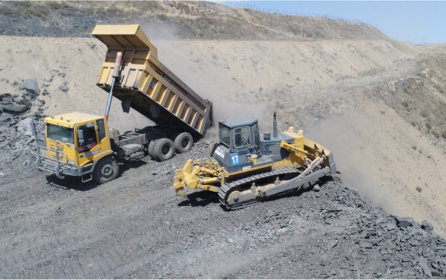 國內(nèi)西南某金屬礦排土場施工機(jī)群作業(yè),山推推土機(jī)以動(dòng)力足、質(zhì)量好、效率高、故障率低贏得該礦山青睞,多次購買山推推土機(jī)。目前,該排土場使用多臺(tái)多種系列山推機(jī)型。