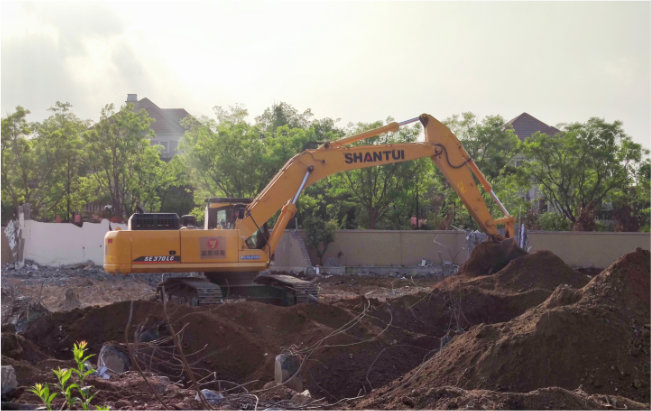 山東某地違章建筑群拆除施工,施工工期短、進(jìn)度急,二十四小時(shí)連續(xù)作業(yè),山推數(shù)臺(tái)挖掘機(jī)參與施工。多種品牌挖掘機(jī)同臺(tái)作業(yè),山推挖掘機(jī)機(jī)以動(dòng)力足、質(zhì)量好、效率高、故障率低得到施工方認(rèn)可。