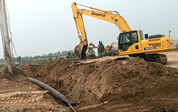 國內(nèi)某城市施工排水溝鋪設(shè)項目,使用山推系列挖掘機進行排水溝挖掘工作,山推挖掘機以挖掘施工速度快、質(zhì)量性能優(yōu)異,故障率低的優(yōu)勢,成功入駐項目施工隊。