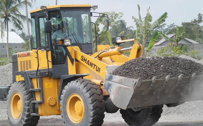 山推裝載機等工作于某采石場,山推裝載機工作效率高、油耗低,動力強勁、挖掘力大,動作響應(yīng)快捷、靈活,適應(yīng)場地能力強。收到客戶的一致好評。