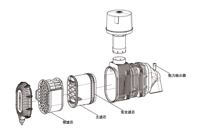目前國四非道路發(fā)動機較多的使用直通式空氣濾清器,其結(jié)構(gòu)與前期國三使用的93空濾不同?,F(xiàn)將結(jié)構(gòu)及保養(yǎng)事項分享。