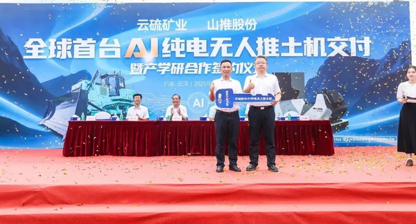 2025年9月2日,在被譽為“東方硫都”的廣東云浮,山東重工旗下山推全球首臺AI純電無人推土機交付儀式暨產(chǎn)學研合作簽約儀式隆重舉行。