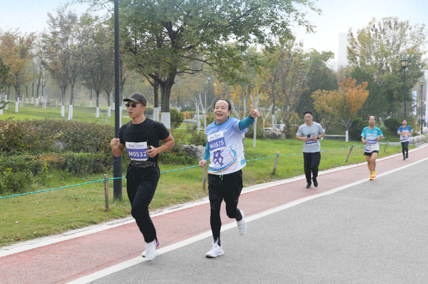 集結(jié)列陣 鳴笛開跑在鳴笛發(fā)令后,健康跑正式開跑!秋風(fēng)拂面,腳步鏗鏘,隊(duì)員們你追我趕、意氣風(fēng)發(fā),成為湖畔一道流動的風(fēng)景線。