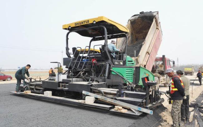 某市道路水穩(wěn)層施工,攤鋪厚度為31cm,攤鋪寬度為9m,大厚度伸縮水穩(wěn)層作業(yè),作業(yè)平整度高及作業(yè)速度,令客戶(hù)刮目相看,同時(shí)得到施工監(jiān)理方的高度評(píng)價(jià)。