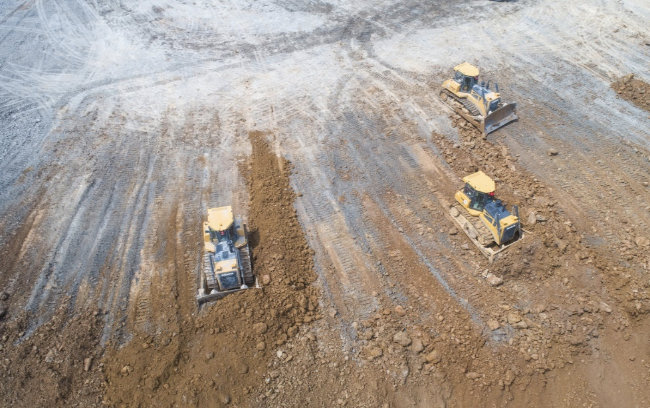 國內(nèi)西南某金屬礦排土場施工機(jī)群作業(yè),山推推土機(jī)以動(dòng)力足、質(zhì)量好、效率高、故障率低贏得該礦山青睞,多次購買山推推土機(jī)。目前,該排土場使用多臺(tái)多種系列山推機(jī)型。