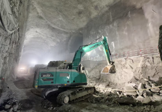 據(jù)介紹,該工程項(xiàng)目位于山東省中部,是國家規(guī)劃建設(shè)的重大能源基礎(chǔ)設(shè)施項(xiàng)目,總投資逾100億元,需開挖水道系統(tǒng)工程隧道2000米以上,以及引水系統(tǒng)斜井等高難度施工作業(yè),地理環(huán)境多變,特別是隧道內(nèi)施工,面臨著空間狹小、粉塵、潮濕等諸多挑戰(zhàn)?!八淼纼?nèi)施工,對挖掘機(jī)的通過性、操縱靈活性要求極高,這臺(tái)山推215電動(dòng)挖掘機(jī),日常操作動(dòng)作順暢,連貫性強(qiáng),尤其適合長時(shí)間高強(qiáng)度作業(yè),幾乎無動(dòng)力衰減,而且不需要更換濾網(wǎng)濾芯,即使環(huán)境惡劣也不怕,用著不僅省錢還省心?!蓖诰驒C(jī)操作手說道。