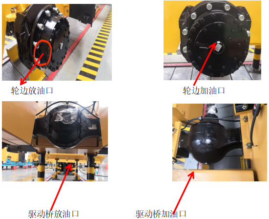 2、將壓路機(jī)停機(jī)10分鐘,冷卻齒輪油后。清理驅(qū)動橋橋包放油口與輪邊放油口上面的泥土,放出齒輪油。