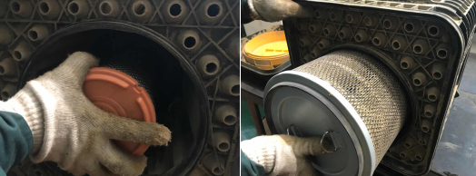 4、拆下安全濾芯,朝向光源檢查安全濾芯透光度,如有透光現(xiàn)象,應(yīng)立即更換安全濾芯。如果不需要更換安全濾芯,應(yīng)用干凈的濕布擦拭,請注意:絕對不能用油布擦拭,絕對不能用氣槍吹安全濾芯。